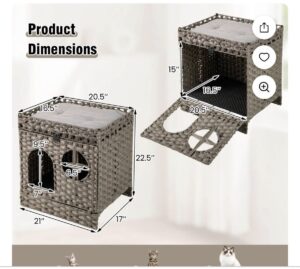 Foldable 2-tier Rattan Cat Litter Box Enclosure with Litter Mat