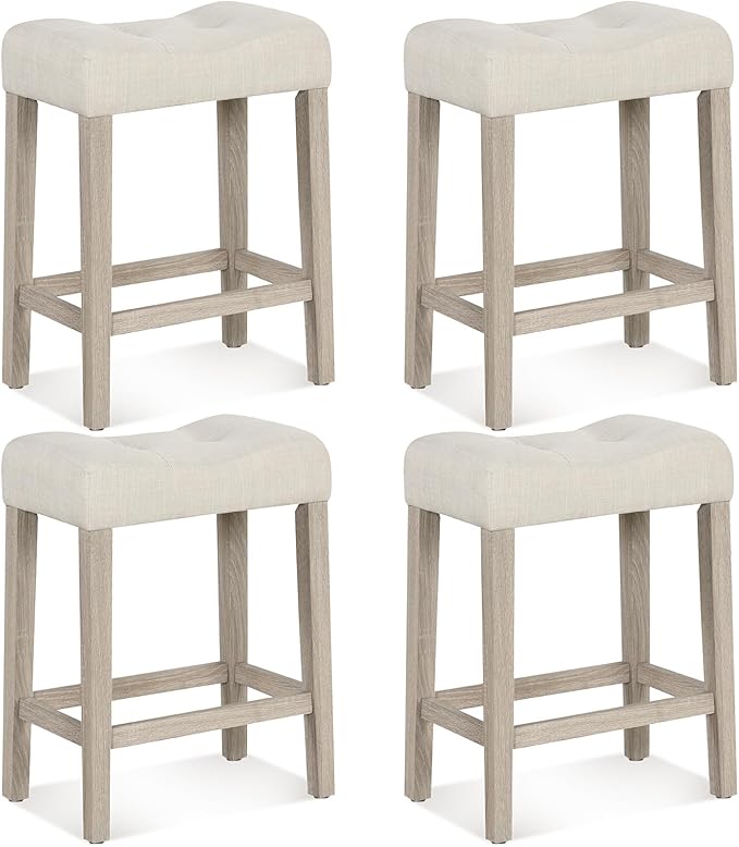Giantex 24″ Bar Stools Set of 4, Upholstered Counter Height Saddle Bar Stools with Footrest and Wood Legs, Farmhouse Button Tufted Backless Barstools for Kitchen Island