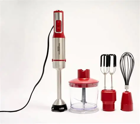 - Includes blending stick, immersion blender attachment, double beater attachment, whisk attachment, chopper attachment, and five recipes