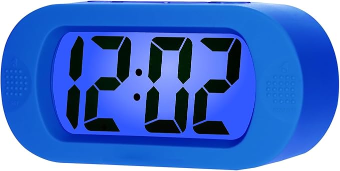 lumeet Kids Alarm Clock Large Digital LCD Travel Alarm Clocks with Snooze and Night Light – Ascending Sound and Handheld Size – Best Gift for Kids (Blue)