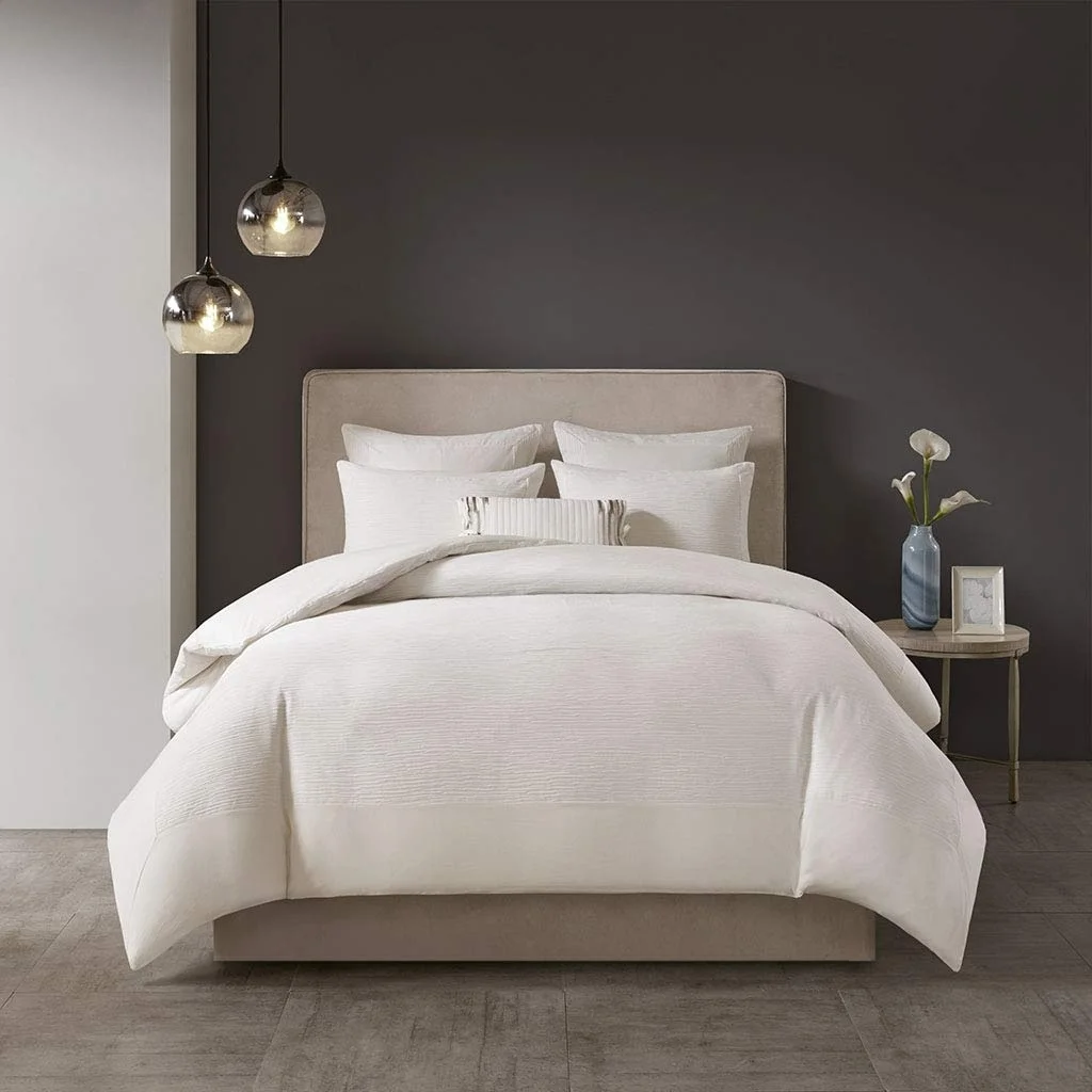 - Cotton blend yarn-dyed textured comforter with matching shams