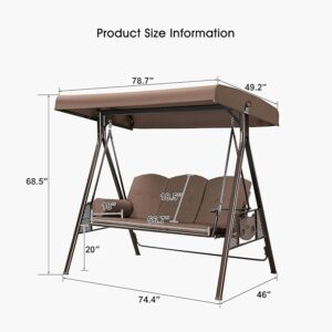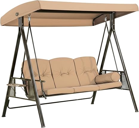 PURPLE LEAF 3-Seat Deluxe Outdoor Patio Porch Swing with Weather Resistant Steel Frame, Adjustable Tilt Canopy, Cushions and Pillow Included, Beige