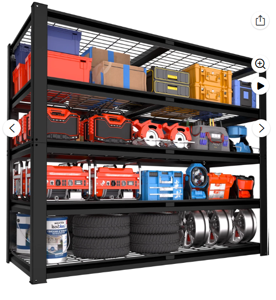 - Large Storage Capacity: 5-tier structure with dimensions of 48″W x 24″D x 72″H, providing ample space for heavy items like garage tires, paint buckets, and aquariums.