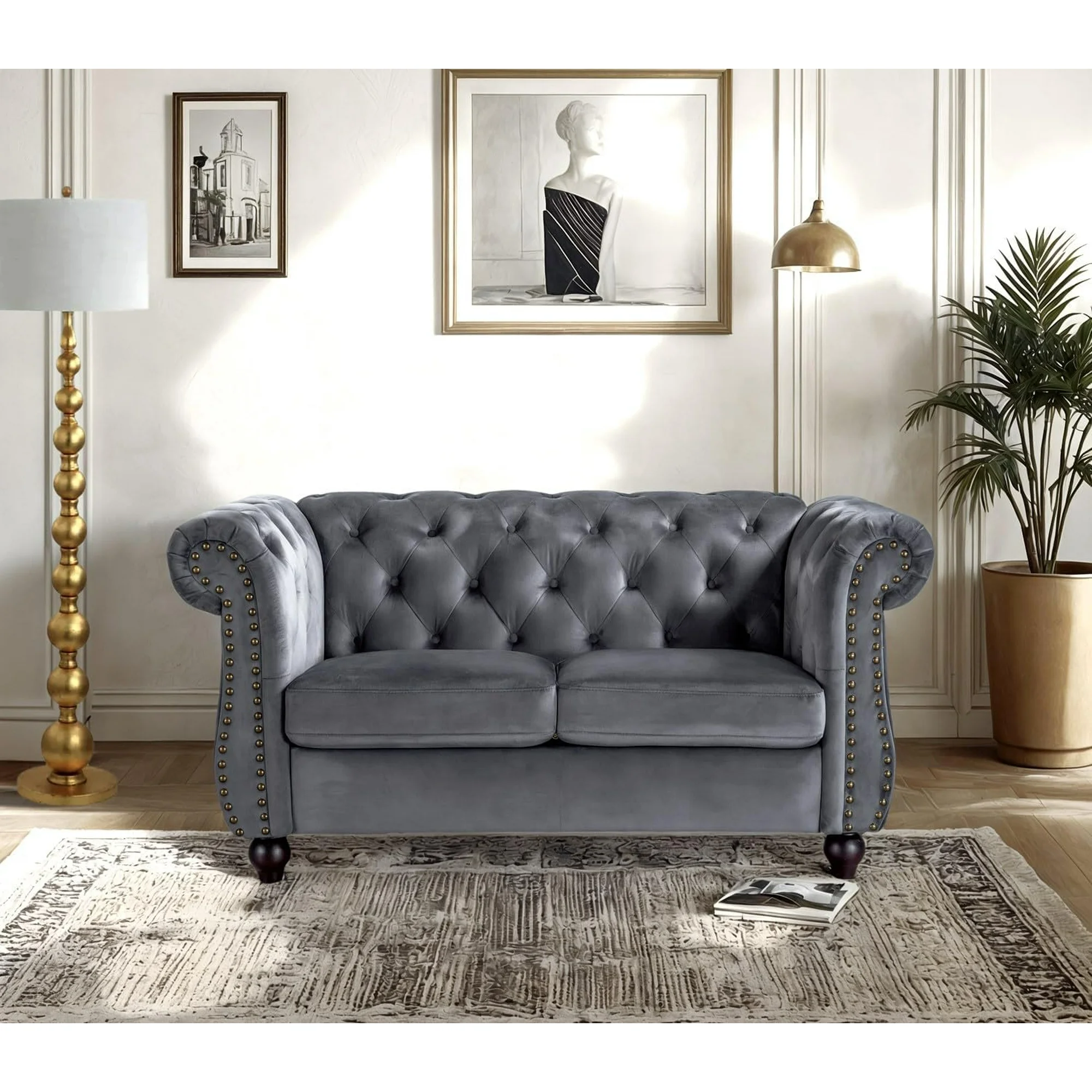 - EXQUISITE CRAFTSMANSHIP: Built with a sturdy wood frame, rolled arms, and button-tufted backrests, this sofa couch adds elegance and sophistication to any living space;Ships in one carton
