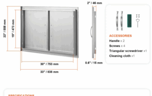 Be the first to review “VEVOR BBQ Access Door, 33W x 22H Inch Double Outdoor Kitchen Door, Stainless Steel Flush Mount Door, Wall Vertical Door with Handles, for BBQ Island, Grilling Station, Outside Cabinet” Cancel reply