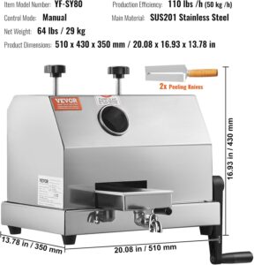 Be the first to review “VEVOR Commercial Sugar Cane Juicer, 110LBS/H High Output Sugarcane Juicer Machine with 3 Stainless Steel Rollers, 2.4″ Large Inlet, Manual Sugarcane Juice Extractor Squeezer for Home/Commercial Use” Cancel reply